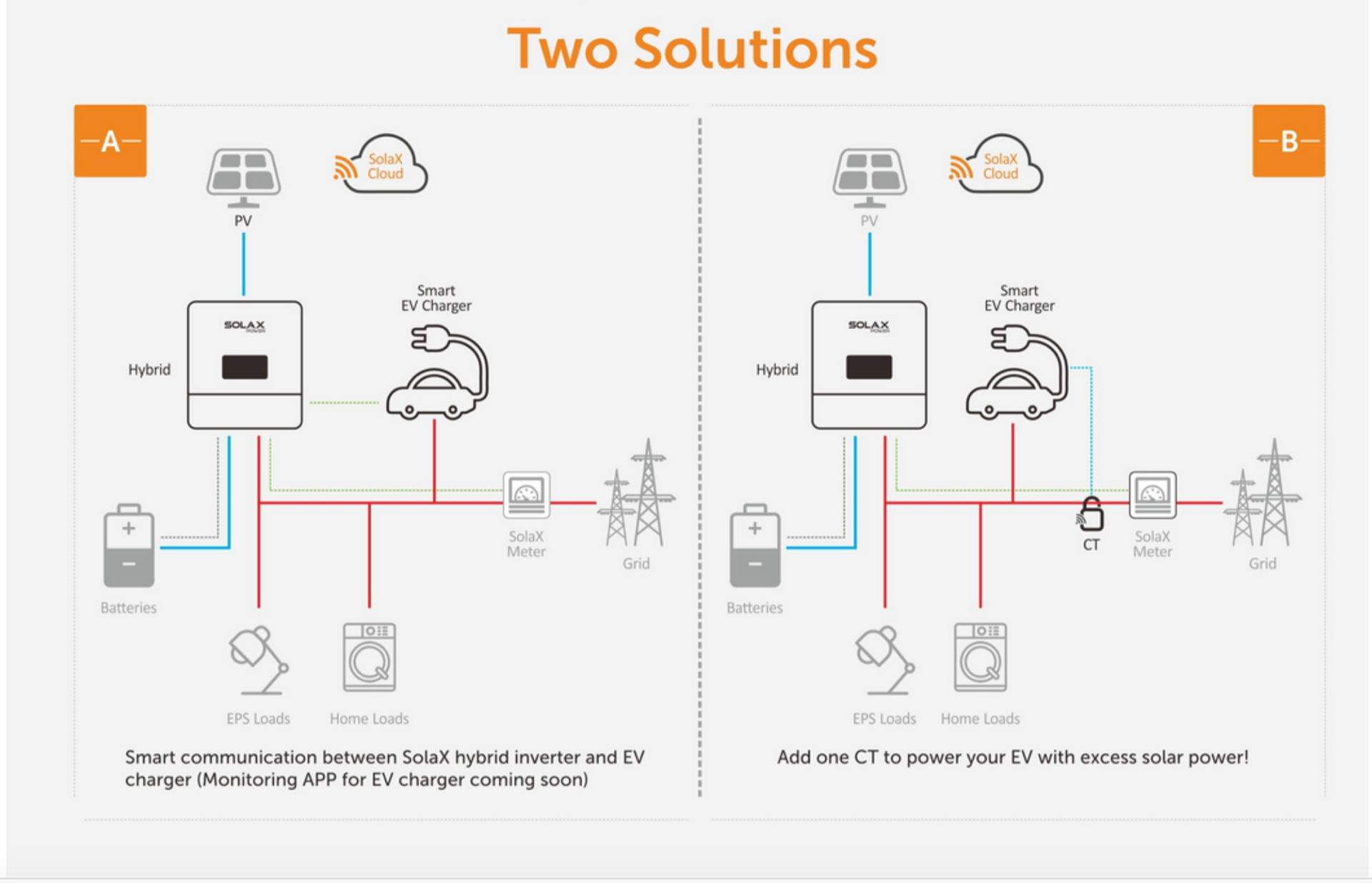 Díky online komunikaci se střídači Solax X3 dokáže nabíječka využít pouze energii ze fotovoltaických panelů bez odběru energie ze sítě.